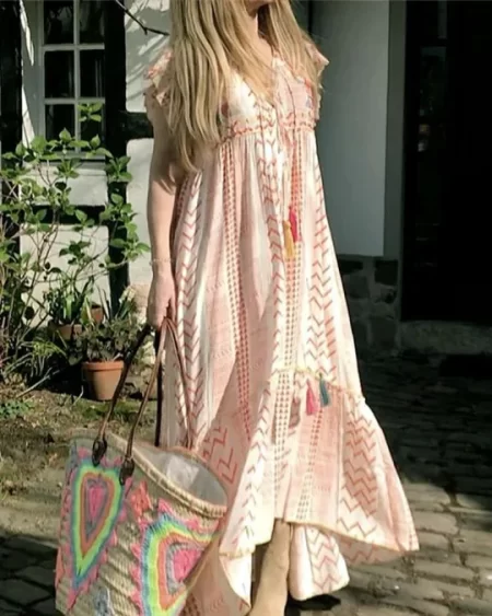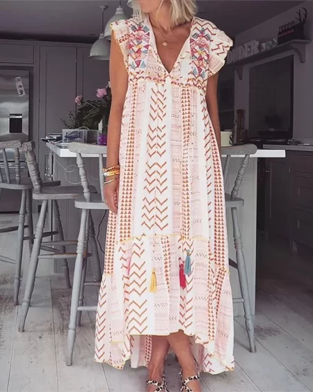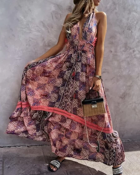 Be the first to review “Casual V-Neck Printed Sleeveless Maxi Dress” Cancel reply