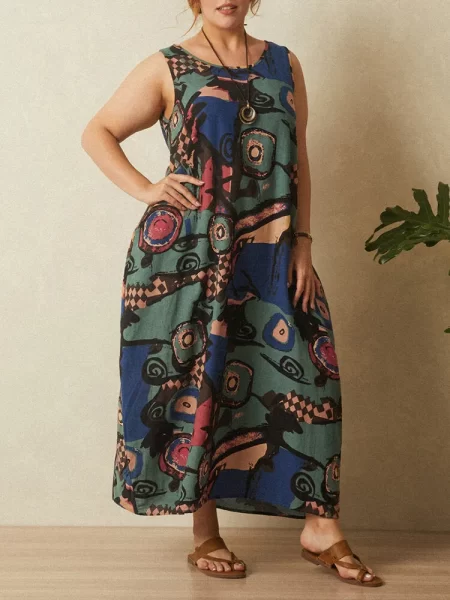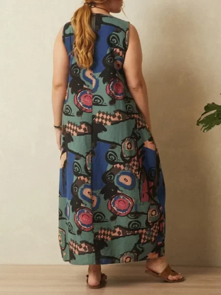 Casual V-Neck Printed Sleeveless Maxi Dress
